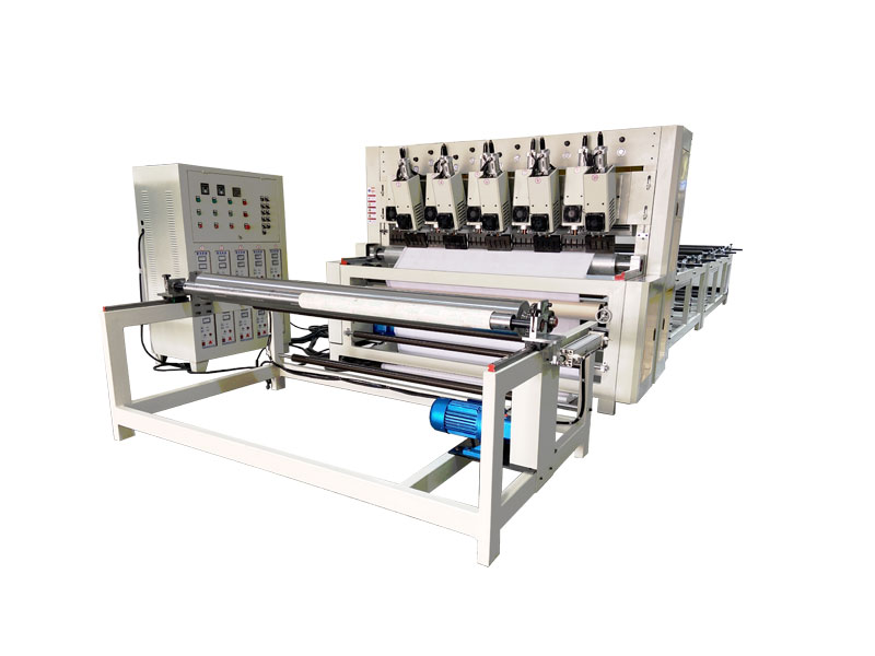 整機(jī)由壓花復(fù)合主機(jī)、超聲波控制柜、成品復(fù)卷機(jī)、存放織物支架組成。